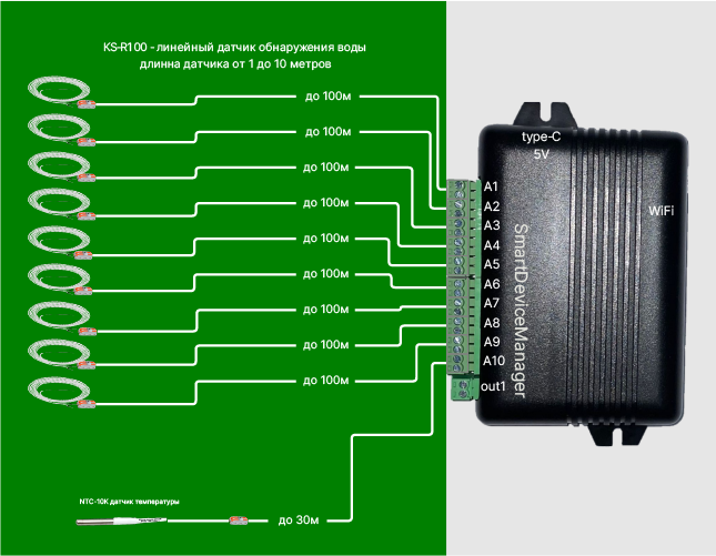 Датчик KapleStop помогает обнаруживать даже небольшое присутствие воды или других токопроводящих жидкостей, с его помощью можно обнаружить как протечку, так и небольшое появление воды или конденсата. Один метр датчика весит всего 3.5 грамма. Его можно разместить в любом месте, закрепить на любой поверхности, спрятать под отделкой.