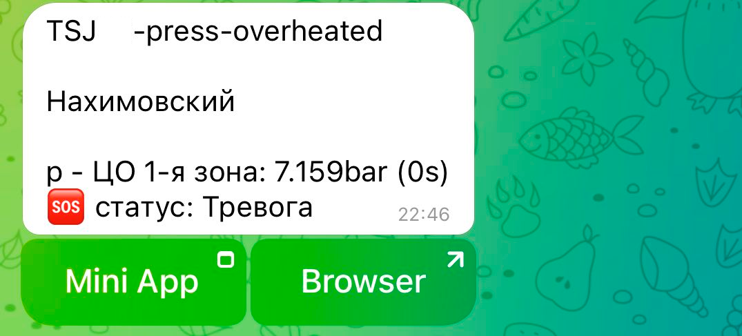 Оповещение в виде push-уведомления отправляется в бот месскеджера telegram.