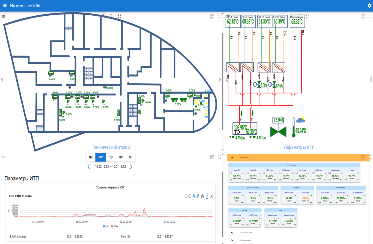 Одновременный доступ всех заинтересованных сотрудников к значениям параметров технологического оборудования, инженерных систем жизнеобеспечения зданий, окружающей среды, состояния конструктивных элементов независимо от их месторасположения.