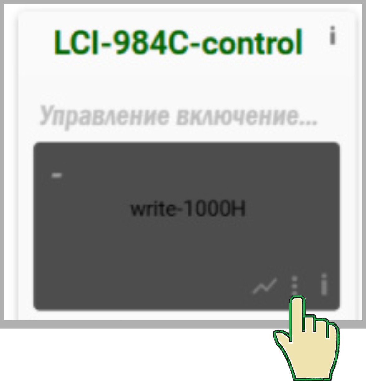Параметр Управления write-1000H отображается темным по причине того, что в Проекте установлено правило, если данные в параметр не поступали ни разу или срок от момента последнего получения прошел больше 3600 секунд (1 часа) для того, чтобы Пользователь обратил на это внимание - карточка отображается на темном фоне.
