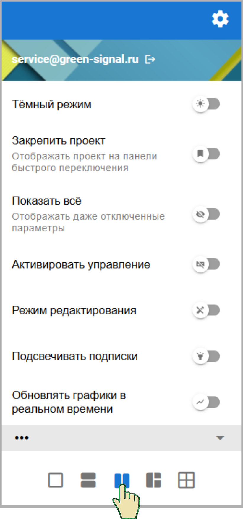 Настройка Проекта и Устройств, присоединенных к Проекту, производится в Приложении web.green-signal.ru Пользователем с правами Владельца или Администратора Проекта.