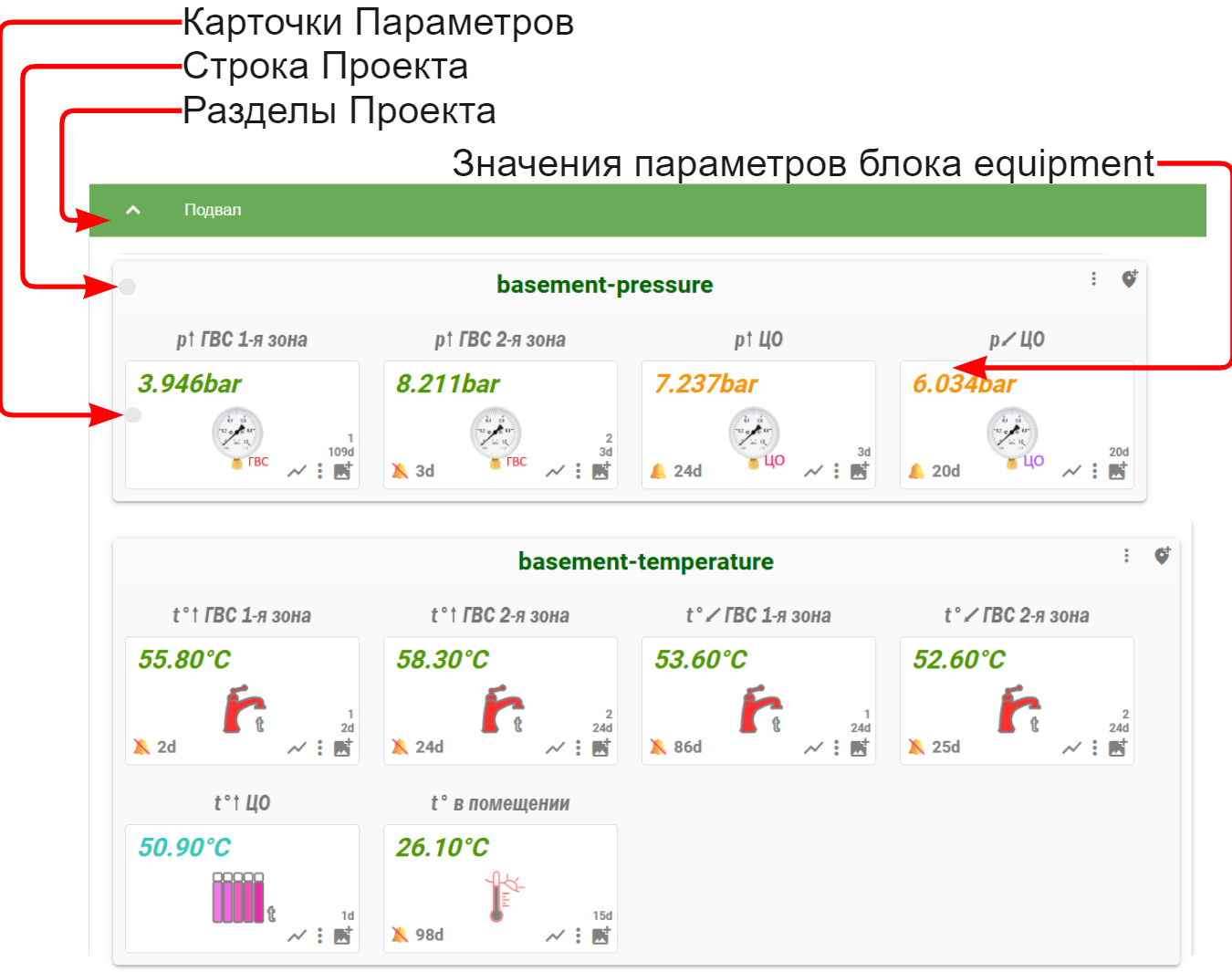 Проекты - набор подключенного оборудования и прав доступа ПользователейВсе данные от подключенного оборудование объединяются в Проекты.