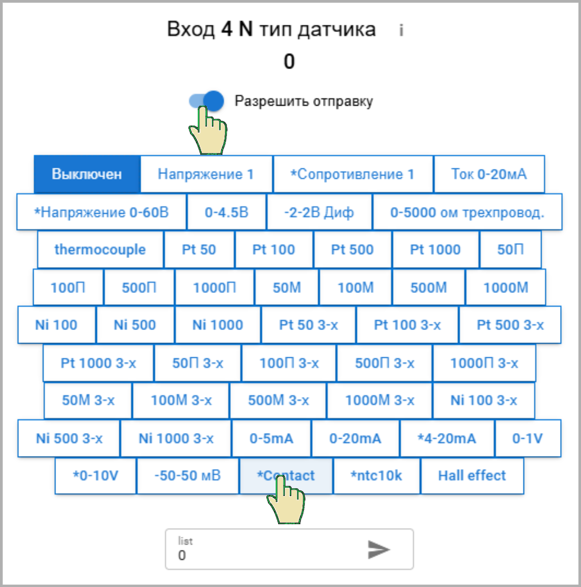 Для геркона в настройках входа указываем тип датчика Contact