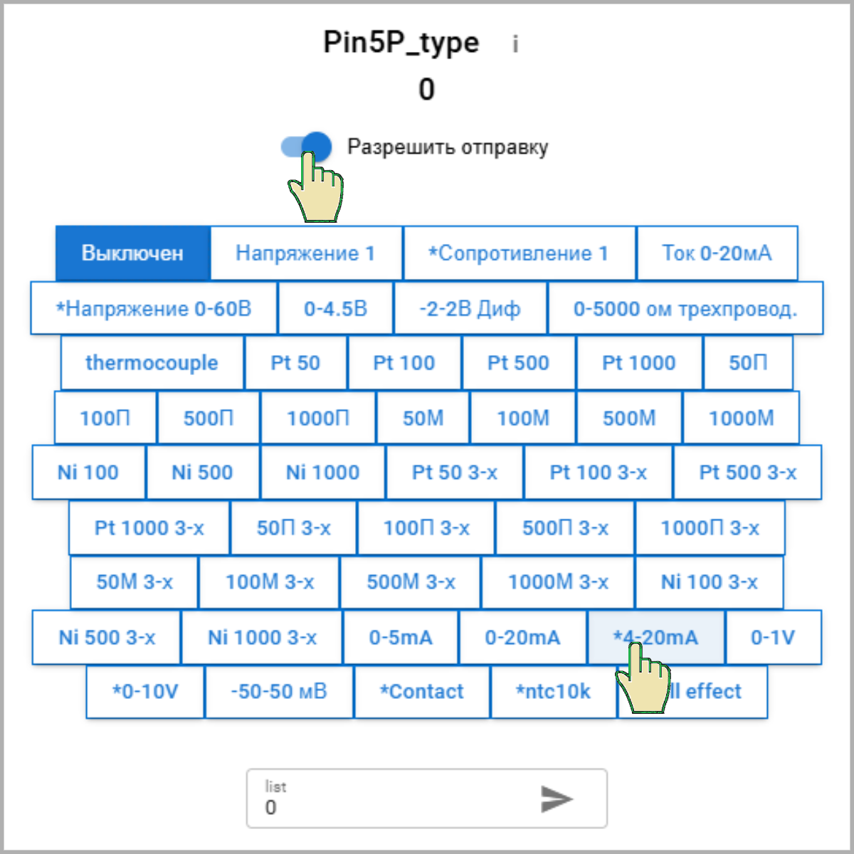 Для преобразователей давления в настройках входа указываем тип датчика 4-20мА и настраиваем максимальное значение давления при 20мА - 16бар