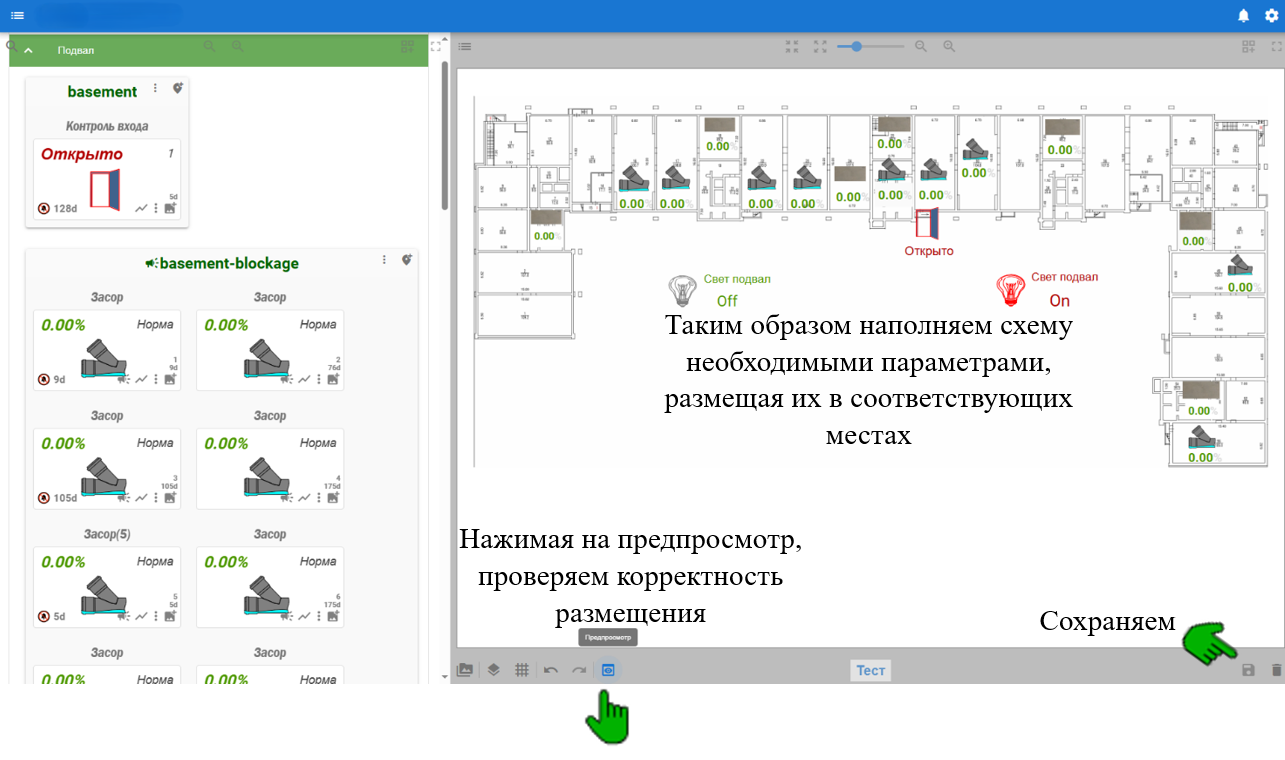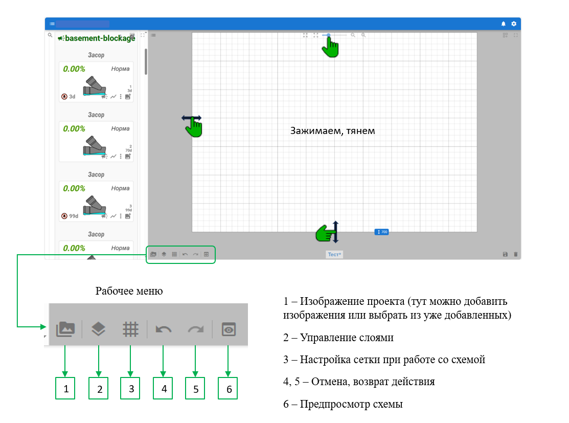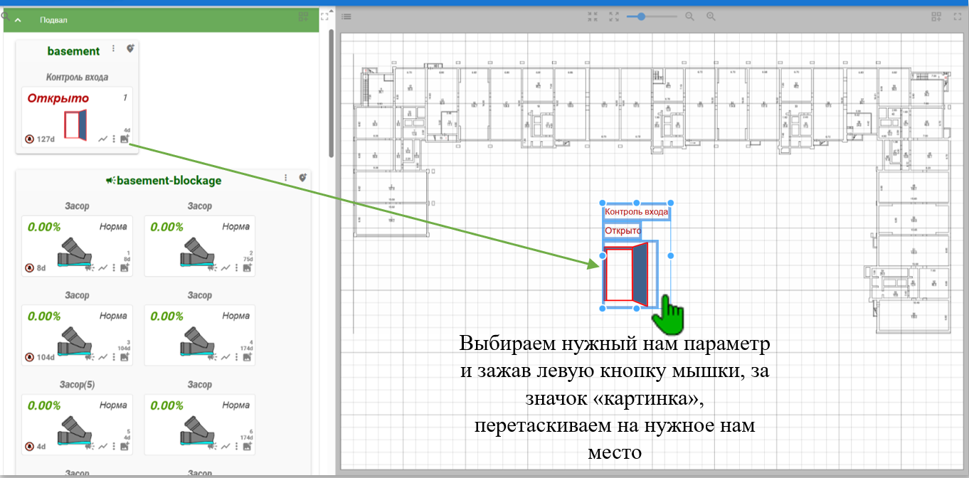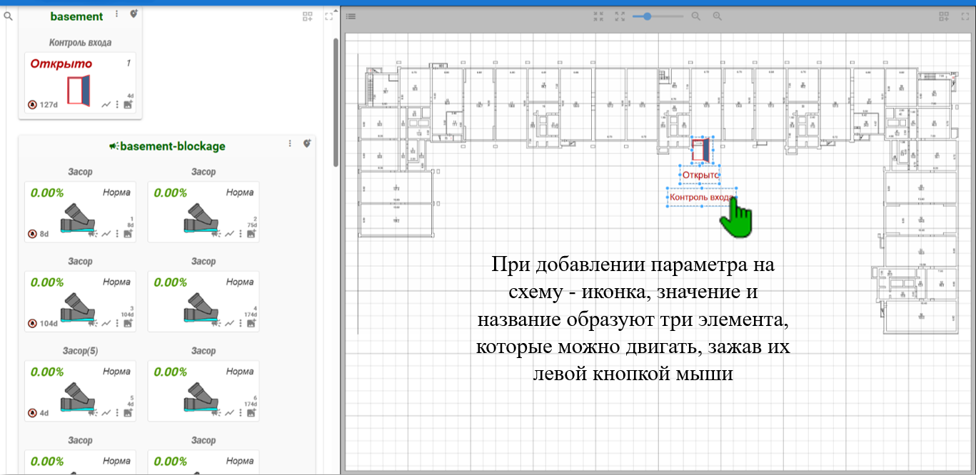 Таким образом можно добавлять различные изображения оборудования и размещать их на схеме в индивидуальном порядке.