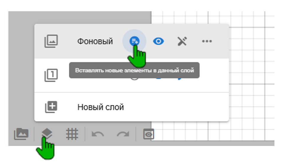 В рабочем меню жмем «Управление слоями» далее в открывшемся окне, в нужном слое, кликаем по кружочку (кружок станет синим) – теперь изображения будут добавляться в этот слой.