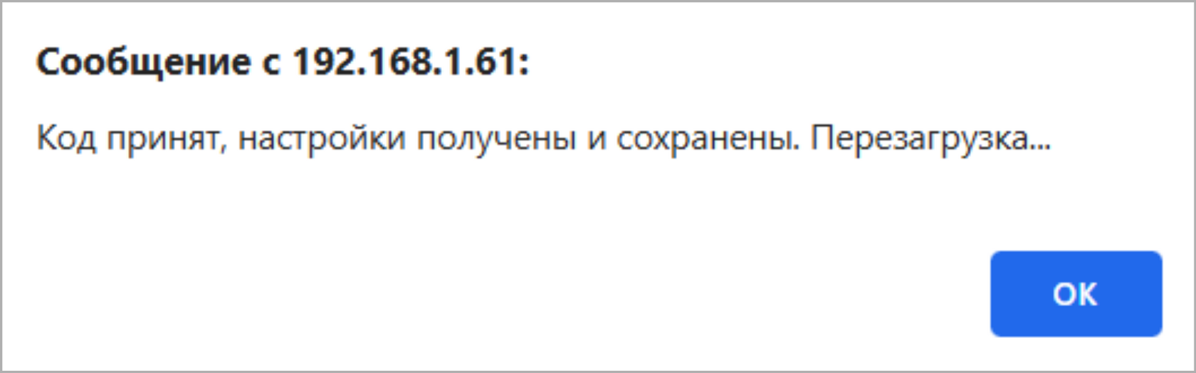 Получите уведомление об успешности получения устройством данных о Проекте После перезагрузки, в Приложении появится сообщение Обновите список Устройств