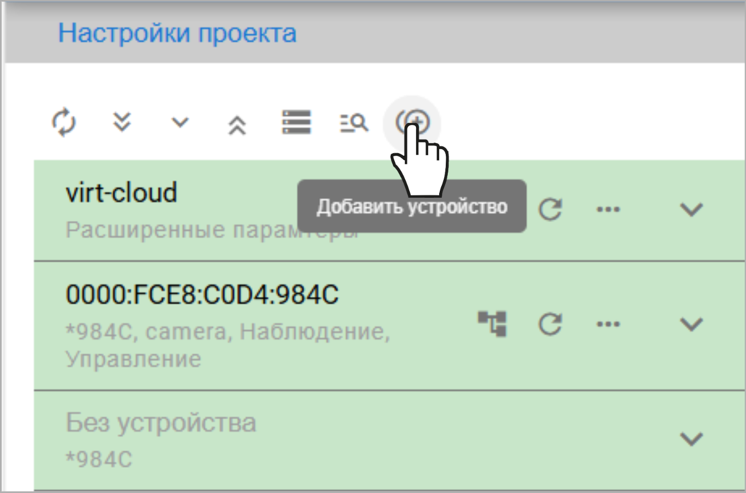 В приложении перейдите в Настройки->Настройки проекта Нажмите на Добавить устройство