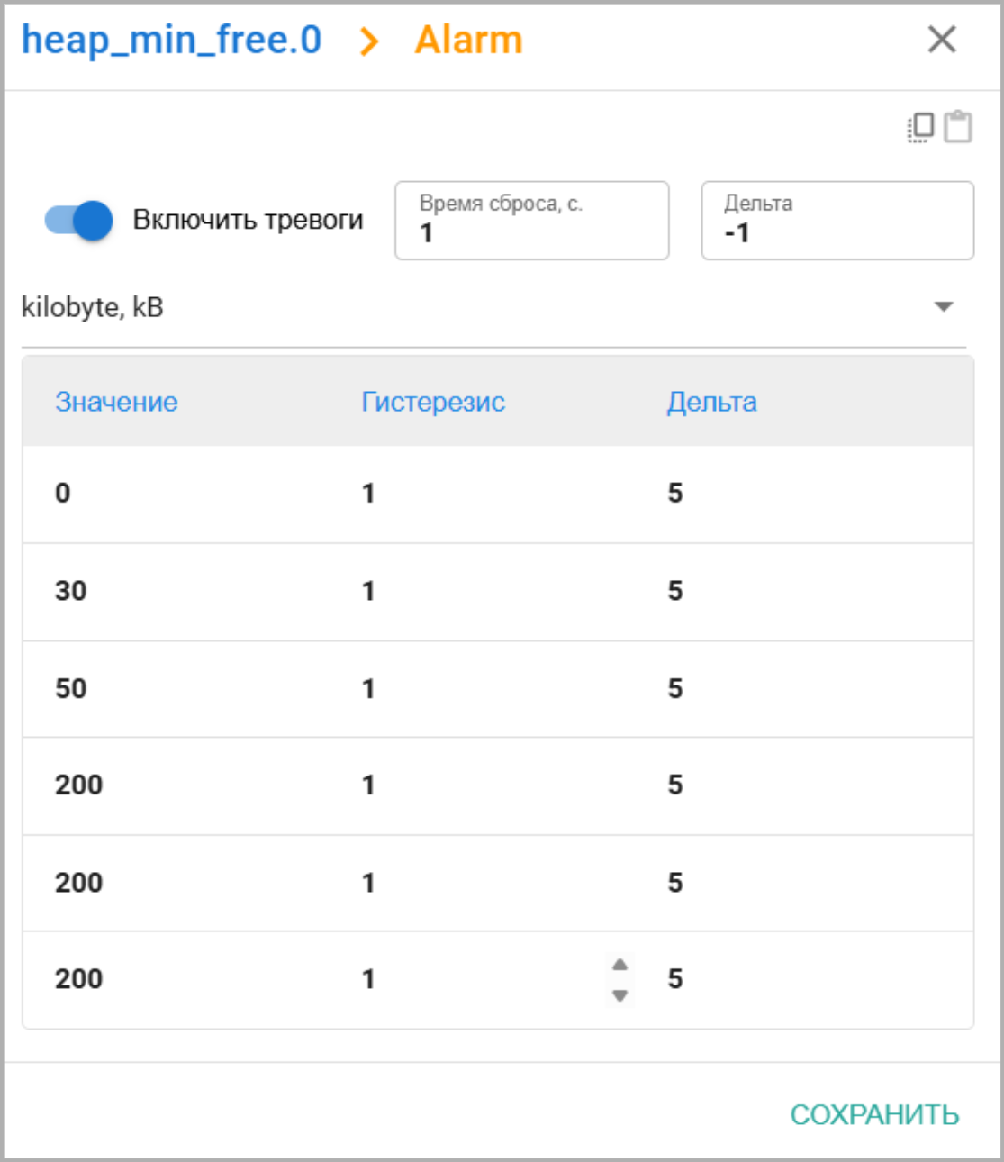 Если значение опуститься ниже 50кБ, уровень тревоги станет равным 2