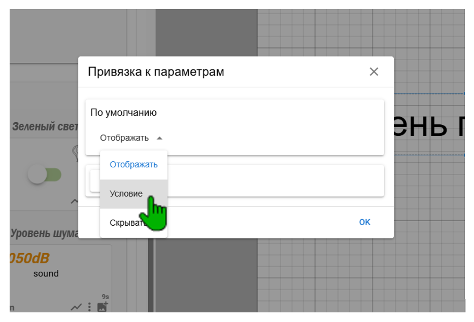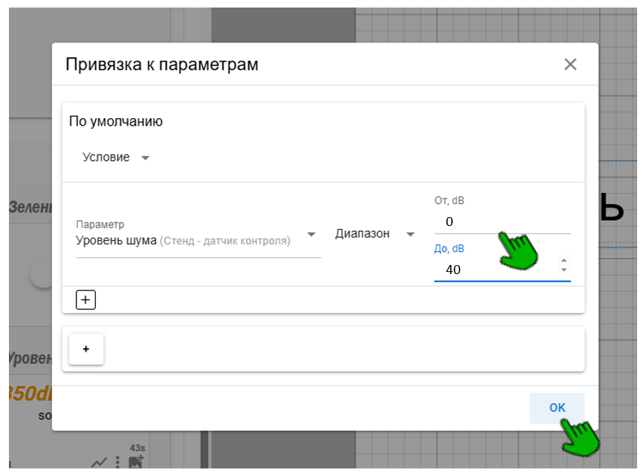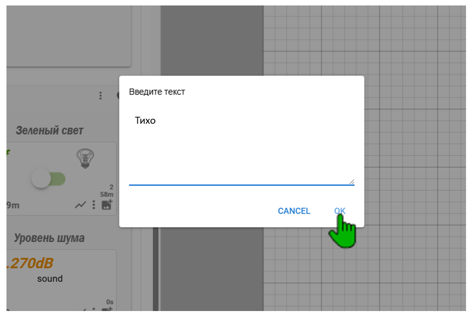 Теперь, когда уровень шума будет в заданном диапазоне, на схеме будет сообщение «Тихо»