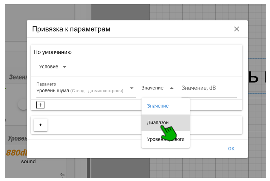 Если при перетаскивании параметра зажать кнопку Alt, то в момент добавления его на схему система предложит набор виджетов, из которого можно выбрать подходящий под задачи и закрепить его за этим параметром. Щелкнув правой кнопкой мыши по виджету можно задать нужный диапазон.