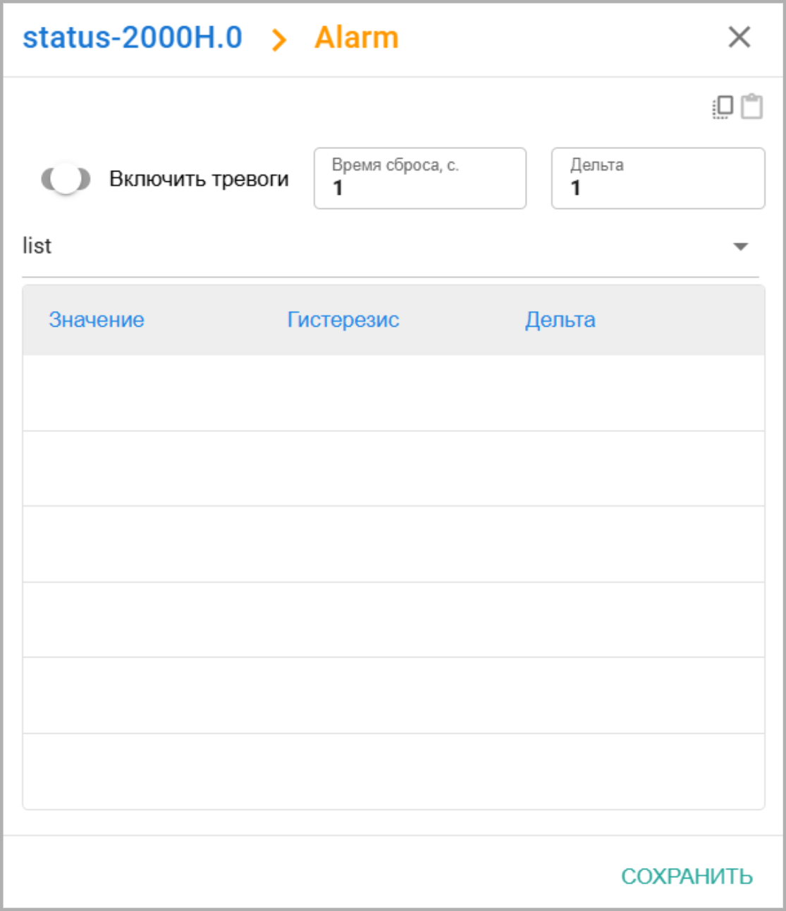 Если планируете контролировать выход значения Параметра за Нормальные пределы, необходимо установить атрибут alarm🔔