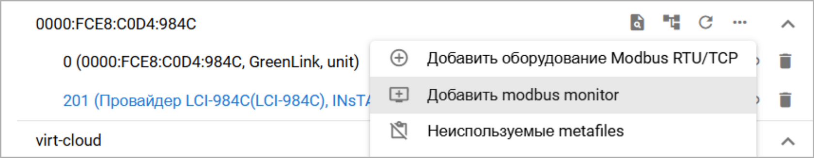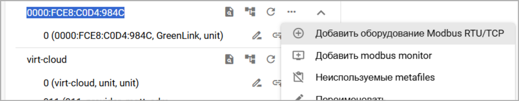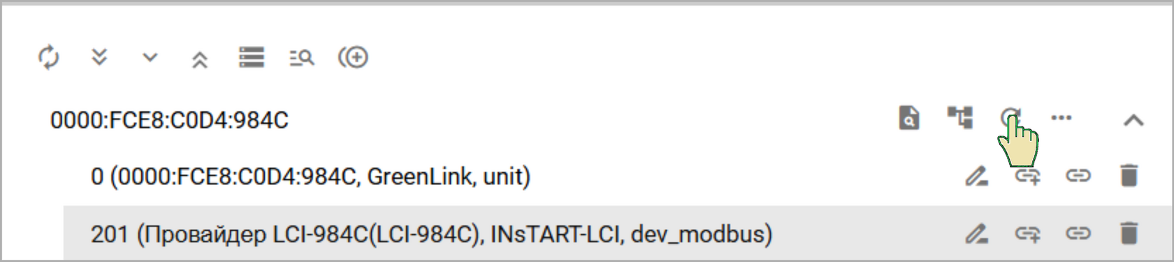 После отправки настройки Провайдера на Устройство GreenLink и перезагрузки, Провайдер появится в списке блоков equipment. Обновите список equipment.
