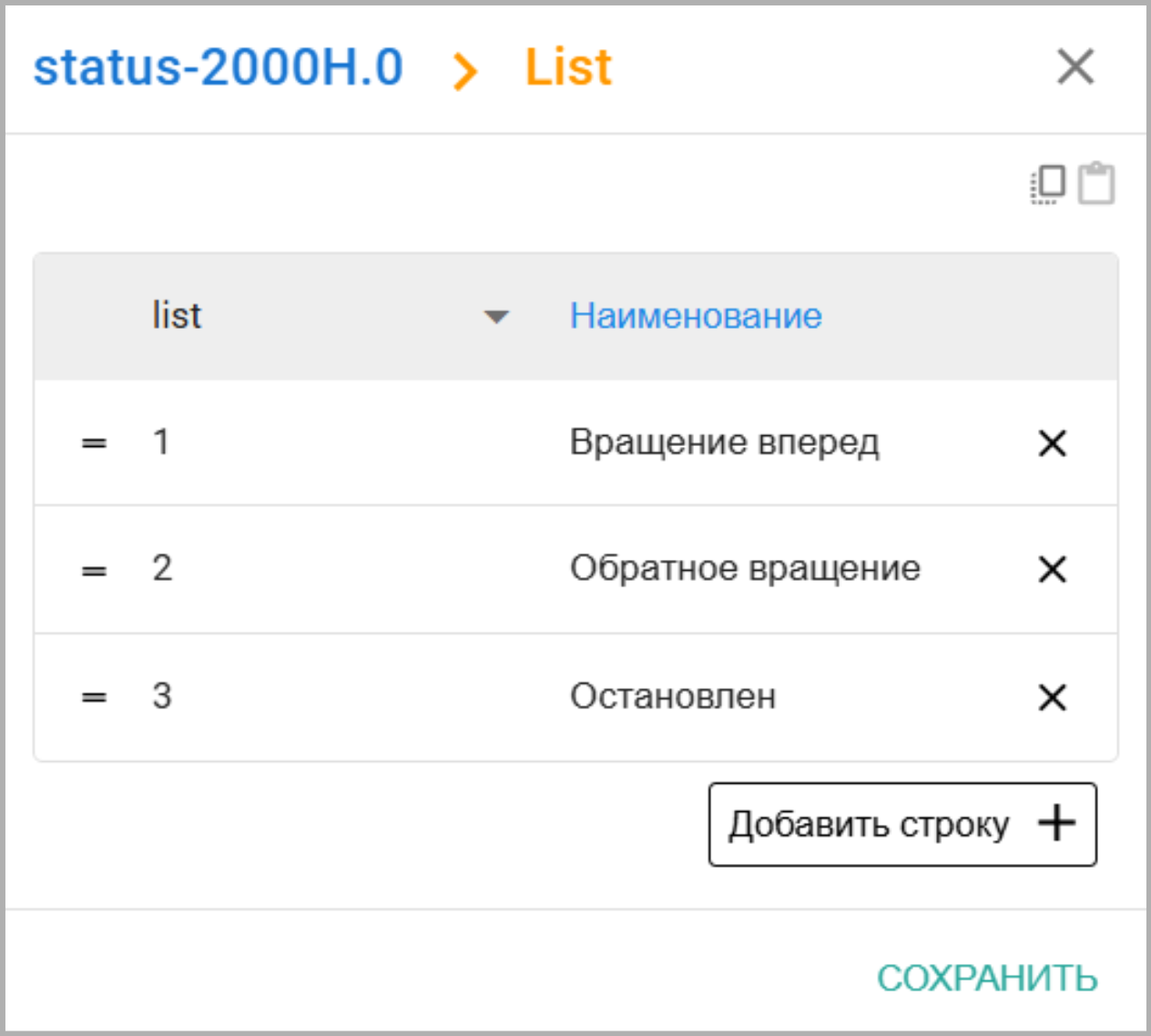Если для статуса нет необходимости порождать Тревоги, то таблицу уровней можно не заполнять. За счет значения Дельты:1, публикация будет производится при каждом изменении Статуса немедленно. Если есть необходимость получать уведомления о запуске/остановки работы ПЧ, заполните таблицу уровней.