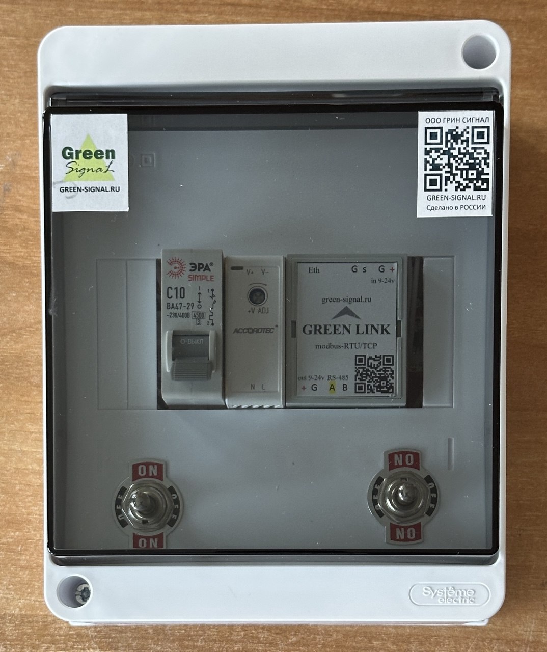 Наше предложение стало простым решением этой проблемы. Поскольку на данном объекте уже функционировала наша система автоматизации Green-Signal, мы предложили дополнить её функцией дистанционного управления освещением. Для реализации проекта потребовалось установить дополнительный модуль управления на базе нашего устройства Green-Link. Сам монтаж нового блока вместе с демонтажом устаревшего оборудования занял всего лишь 20 минут, а интеграция в общую систему заняла 10 минут.